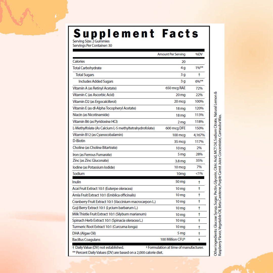 غذّي جسمك من الداخل والخارج مع حلوى الفيتامينات النباتية المتعددة - مزيج غني من الفيتامينات والمعادن والمغذيات النباتية الأساسية، مصمم لدعم صحتك وطاقتك اليومية. صُممت هذه الحلوى بنكهة الفراولة للرجال والنساء على حد سواء، وهي طريقة لذيذة وسهلة لتعزيز روتينك الصحي اليومي.